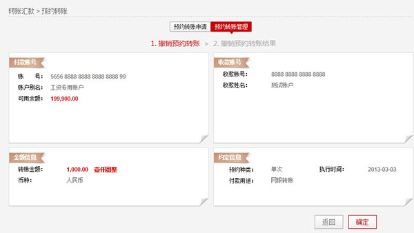 转账汇款 > 预约转账